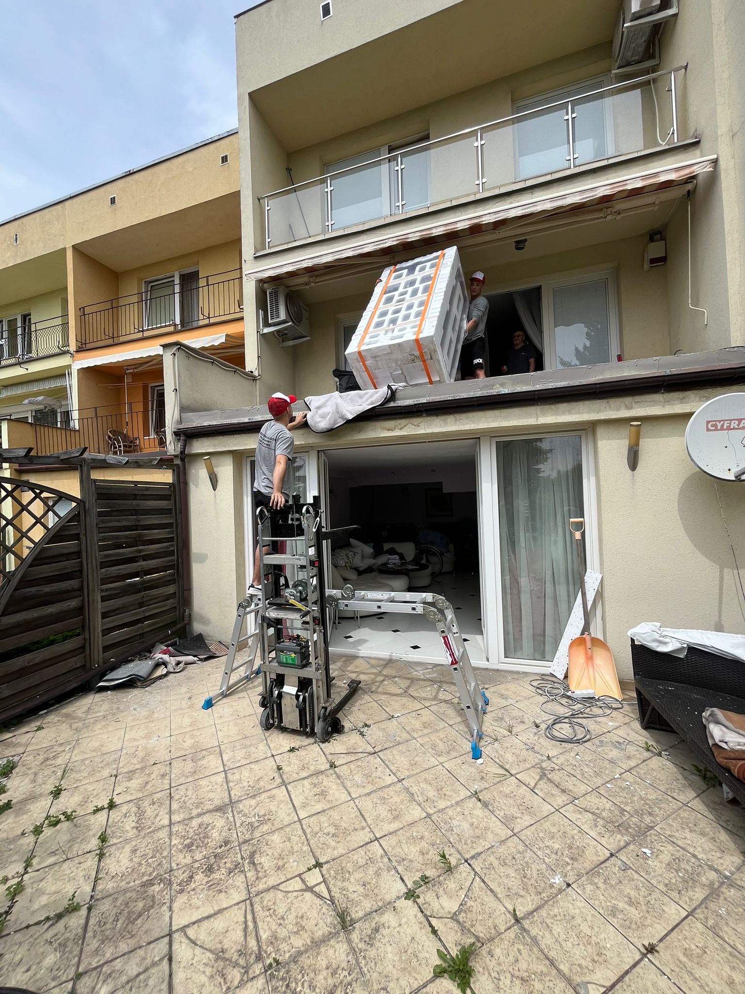 Nasze doświadczenie pozwala nam regularnie i bezpiecznie realizować takie zlecenia. W razie potrzeby – przez balkon, przez okno, z użyciem podnośnika.